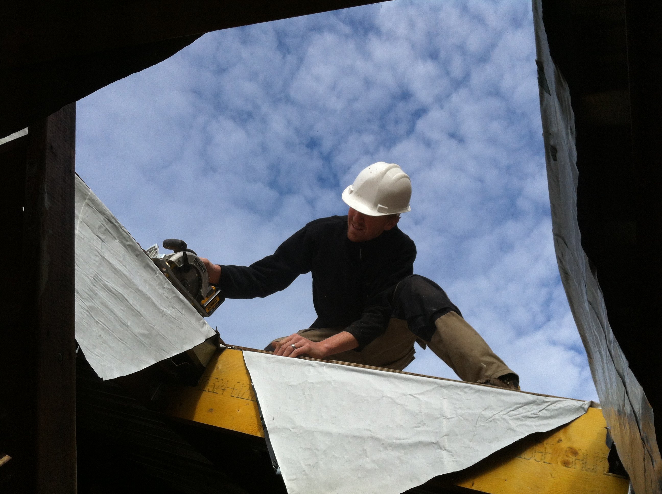 Guy_squaring_rooflight_cutouts Published September 30, 2012 at 2592 × 1936 in a week of drainage- and some visitors from Stanton Prior…