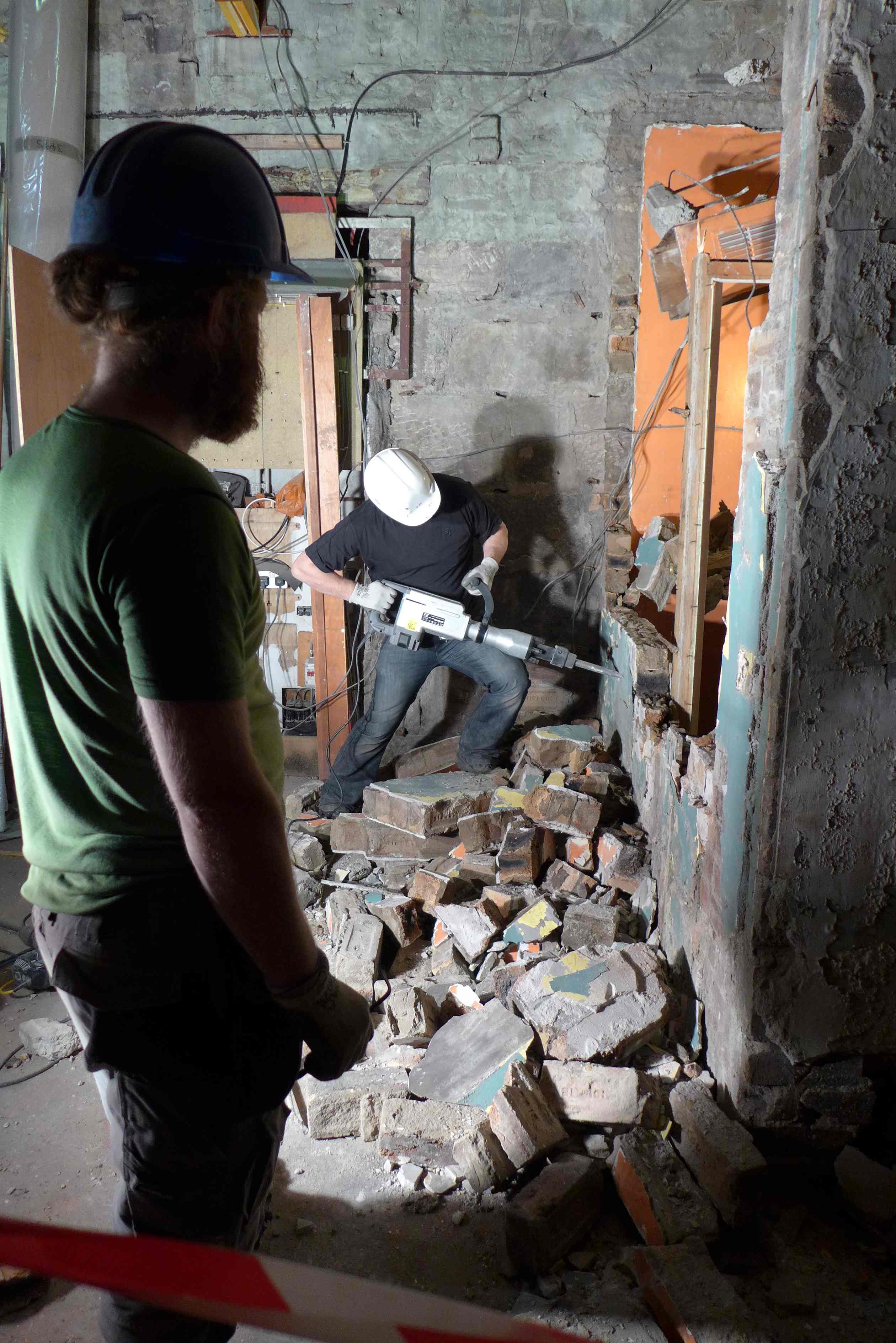 supervising_unpaid_labour Published February 24, 2013 at 2520 × 3776 in down comes the scaffolding- and down come the old toilet walls!