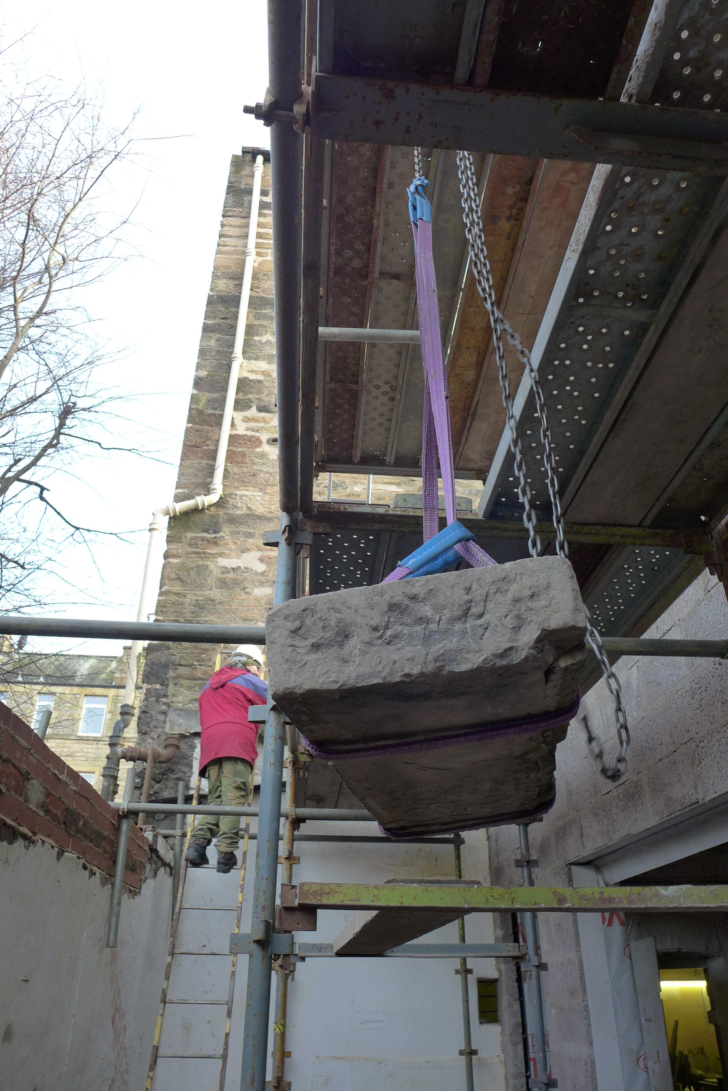 block_and_tackle_lift_stone_copes Published February 24, 2013 at 2520 × 3776 in February: final touches to the roof before the scaf comes down